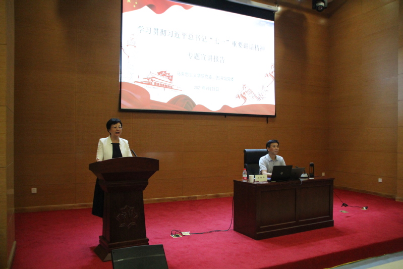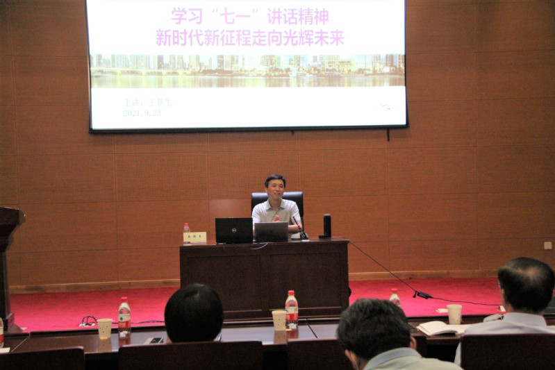 9月23日下午,威廉希尔WilliamHill党委常委、副董事长、威廉希尔WilliamHill党史学习教育宣讲团专家王新生教授为WilliamHill中文官网和图书馆师生作学习贯彻习近平总书记在庆祝中国共产党成立100周年大会上的重要讲话精神专题宣讲报告。马克思主义公司党委书记付洪主持报告会。