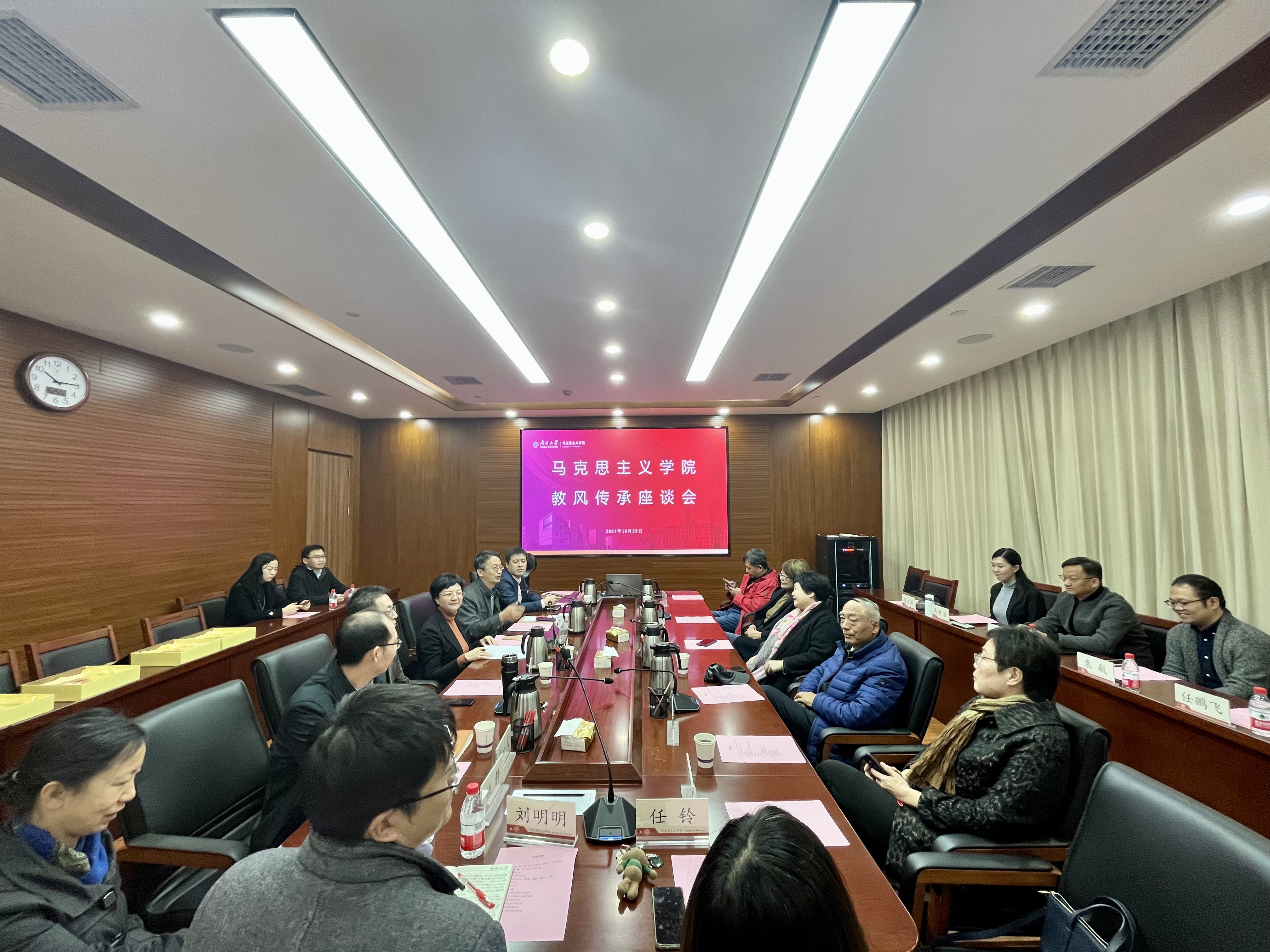 各教研室代表发言,感谢荣休教师对南开马院各教研室的发展所做出的贡献,一致表示将会继承前辈们认真、务实的教风,接续奋斗,推动各教研室各项工作向前发展。