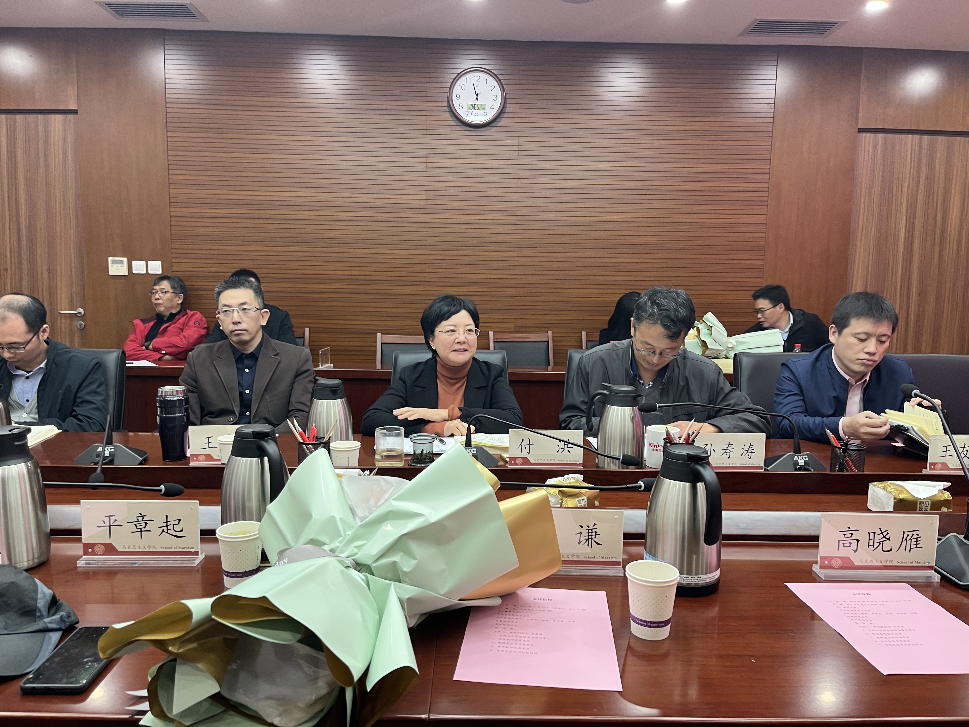 公司党委书记付洪教授代表公司感谢四位荣休教授为公司发展做出的积极贡献。她指出,各位教授把自己的青春和最好的年华献给了马院,取得了显著的成绩,为马院今天的发展奠定了坚实的基础,为广大马院教师树立了榜样。她代表公司向四位荣休教授送上美好的祝福,祝愿大家身心健康,在人生的新阶段继续活出自己的精彩。