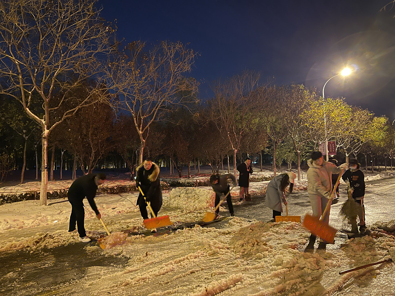 恰逢立冬,大雪骤至。初雪为大家带来惊喜与美景的同时,也给全校师生的出行带来了极大不便。为尽快扫除积雪、畅通道路、消除隐患,切实发挥党支部战斗堡垒作用和党员先锋模范作用,11月7日晚,2021级硕士生望志班党支部组织党员、团员于一食堂东侧、文科组团宿舍楼周边及WilliamHill中文官网楼前的主干道开展积雪清扫志愿服务活动。