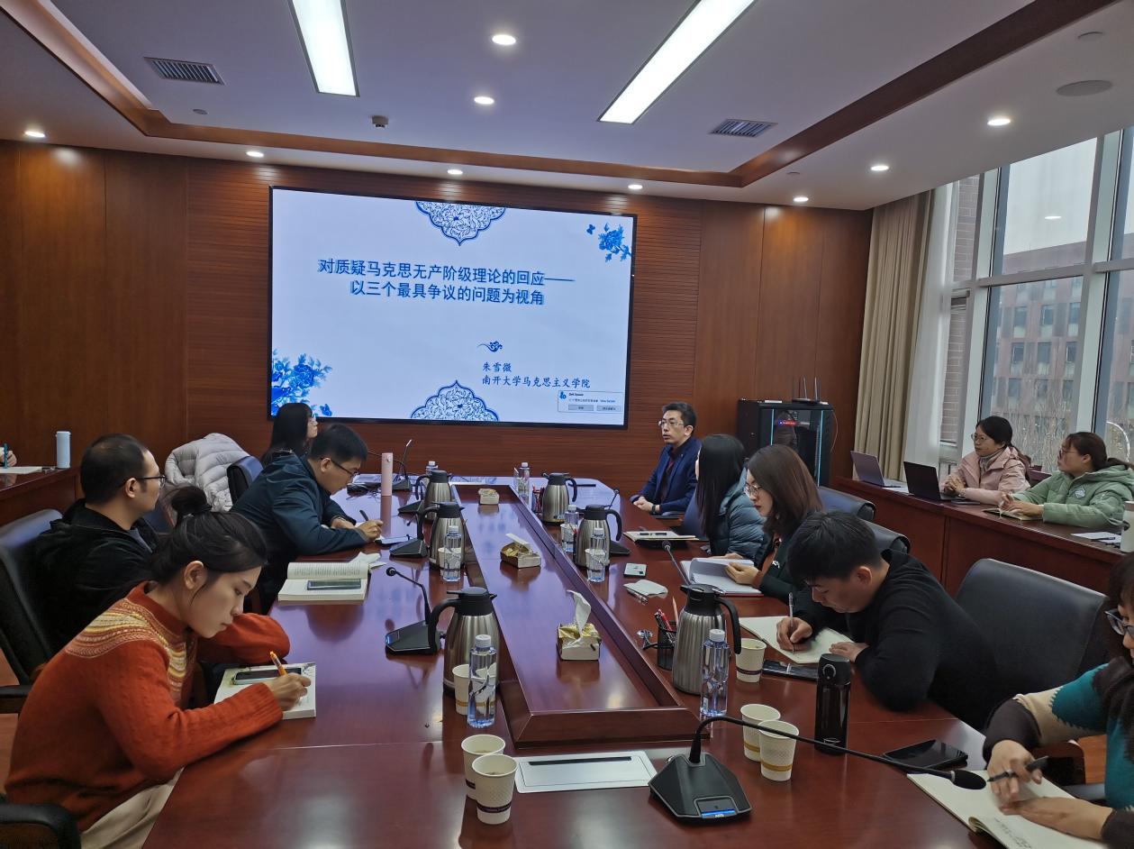 12月9日,WilliamHill中文官网“双周学术沙龙”第六期在321教室举行,公司朱雪微副教授作了题为“对质疑马克思无产阶级理论的回应——以三个最具争议的问题为视角”的专题报告。本次沙龙由WilliamHill中文官网副经理王生升教授主持。
