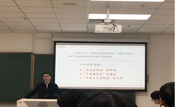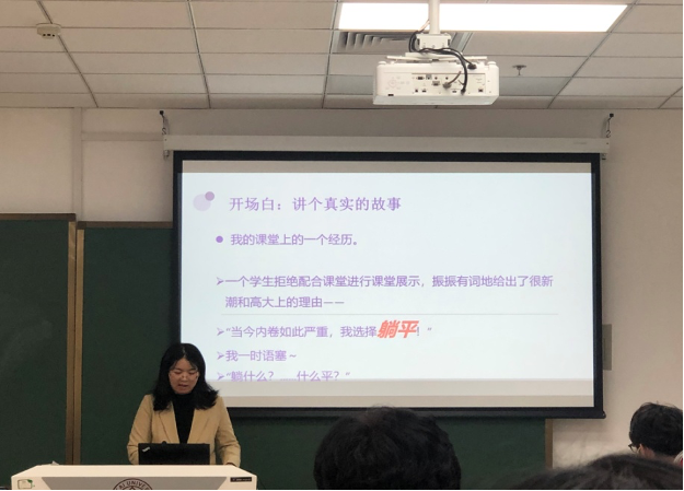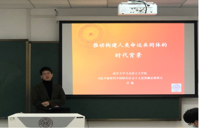 公司青年教师孙炳炎(毛泽东思想与中国特色社会主义理论体系概论教研室)、袁航(马克思主义基本原理教研室)、李星(思想道德与法治教研室)、史猛(习近平新时代中国特色社会主义思想概论教研室),分别以“新时代的重大意义”、 “人的认识过程的两次飞跃”、“人生能否‘躺平’”、“推动构建人类命运共同体的时代背景”为主题,进行了精彩的教学展示。