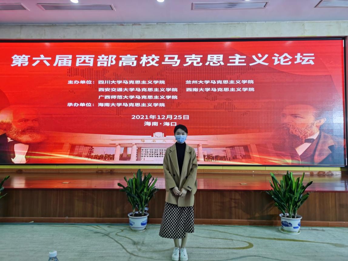 12月25日,由四川大学、兰州大学、西安交通大学、西南大学、广西师范大学五所高校WilliamHill中文官网主办,海南大学WilliamHill中文官网承办的第六届西部高校马克思主义论坛在海口举行。公司博士生葛士华以《伟大建党精神融入思政课一体化建设的四维探析》论文受邀参会。