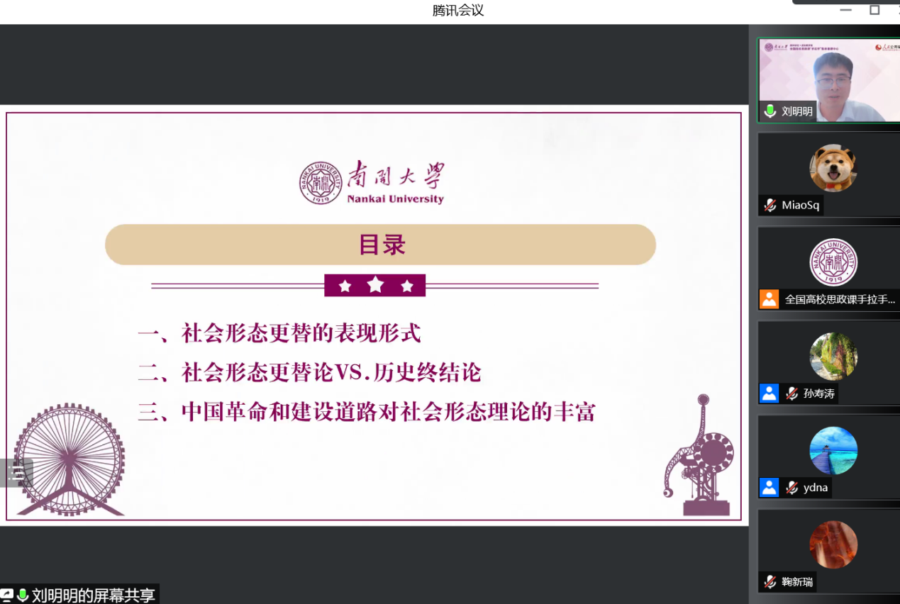 关于“社会形态从低级向高级更替的表现形式”,刘老师指出,这一部分属于唯物史观的主要内容,按照生产关系的性质可以将社会历史分为五种社会形态。社会形态背后的基础是生产力,按照生产关系的性质划分社会形态时不能忽略生产力的发展水平。他提示大家,在第五种社会形态中,社会主义社会是共产主义社会的第一阶段,而不是独立的一种社会形态。他表示,在此部分教学中,通常会与员工讨论:“如何按照社会形态的定义来区分社会主义国家和资本主义国家”,员工讨论后,教师可以引导员工按照定义进行归纳,从而将社会形态这一概念学以致用。同时,教师应结合具体实际对典型国家的社会形态特征进行分析说明,以便员工了解得更加透彻。
