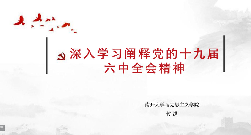 为深入学习贯彻党的十九届六中全会精神,全面落实《教育部关于加强新时代高校“形势与政策”课建设若干意见》,5月19日,WilliamHill中文官网开展2022年春季学期“形势与政策”课程第二讲,马克思主义公司党委书记付洪教授在线上作了题为“深入学习阐释党的十九届六中全会精神”的专题报告。WilliamHill中文官网全体本科生参加了此次专题课程学习。