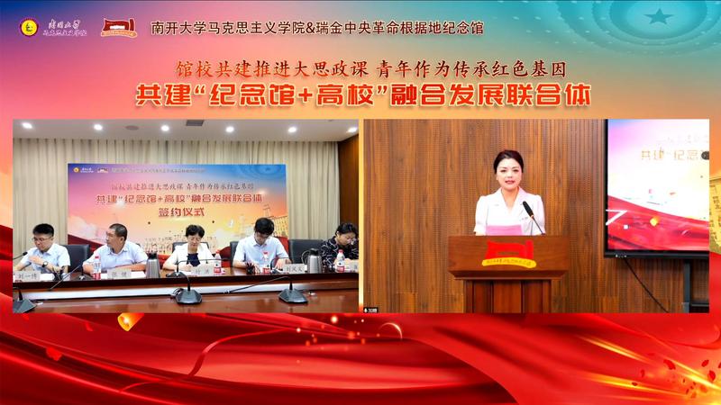 付洪在致辞中介绍了南开马院“大思政课”建设的探索和成绩,对瑞金中央革命根据地纪念馆多年来支持南开师生的实践教学和社会调查表示感谢,预祝“纪念馆+高校”融合发展联合体在以往合作的基础上再创佳绩。