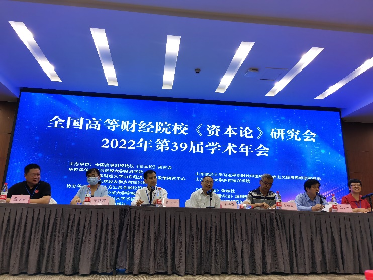 为喜迎党的二十大胜利召开,深入学习贯彻党的十九届六中全会精神,深入持续推进研究《资本论》,推动和促进中国经济社会与高校中国特色社会主义政治经济学教学高质量发展,7月26日至27日,全国高等财经院校《资本论》2022年第39届学术年会在山东济南召开。本次会议由全国高等财经院校《资本论》研究会主办,山东财经大学经济公司、习近平新时代中国特色社会主义经济思想研究基地、山东经济理论与政策研究中心、乡村振兴公司、乡村振兴研究院承办。会议采取“线上+线下”的方式,中国人民大学、威廉希尔WilliamHill、武汉大学、西南财经大学、江西财经大学等30余个单位的专家学者参会。95人参加线下会议,1397人参加线上会议。