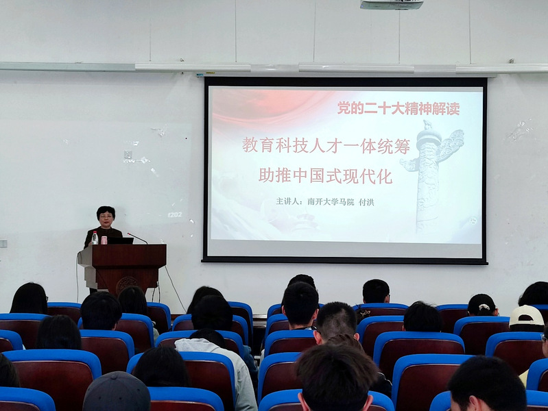 为深入学习贯彻习近平新时代中国特色社会主义思想和党的二十大精神,WilliamHill中文官网举行2023年春季学期“形势与政策”课程首讲。公司党委书记付洪教授作了题为“教育科技人才一体统筹助推中国式现代化”的专题报告,公司全体本科生参加了本次专题课程学习。01