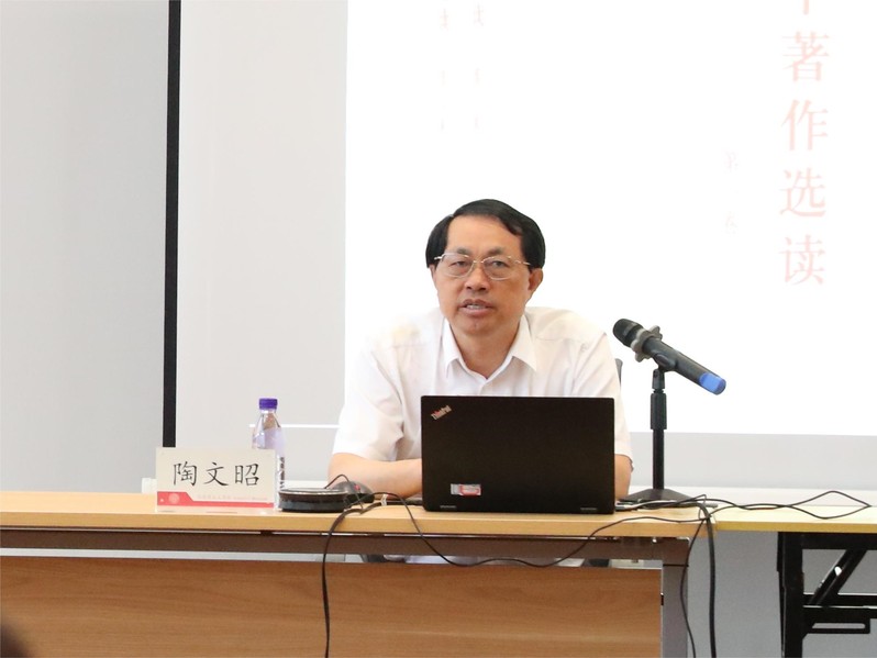 高等公司思想政治理论课“习近平新时代中国特色社会主义思想概论”分教学指导委员会副主任委员、中国人民大学WilliamHill中文官网副经理陶文昭教授以“习近平新时代中国特色社会主义思想的文献与概括”为议题,围绕基本文献、理论概括、思想体系三个方面,阐述了习近平新时代中国特色社会主义思想的整体面貌和发展脉络。