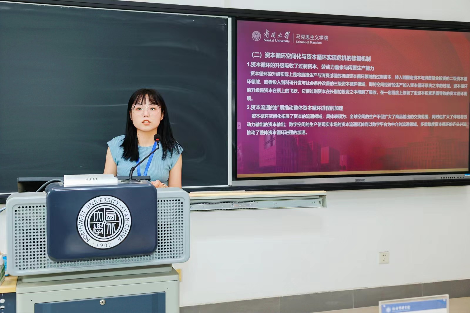 公司博士研究生王晓霞、硕士研究生赵书宁、孔月恒作为优秀论文作者就“当代资本主义资本循环空间化的政治经济学研究”与“职能资本金融异化视角下的资本无序扩张”问题进行了主题发言,受到了与会专家学者的好评。本次论坛通过17场主旨报告、10场青年学者分享、18个平行论坛、1场经理论坛和1场期刊论坛,汇聚学术资源、深入交流研讨、激荡思想火花、互相启发提升,为新时代中国特色社会主义政治经济学的建设发展贡献力量、为新时代政治经济学青年学者的队伍建设和人才培养添砖加瓦。