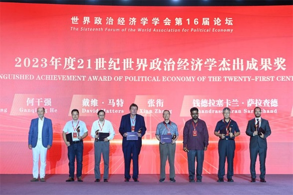 开幕式揭晓了2023年度“世界马克思经济学奖”和“21世纪世界政治经济学杰出成果奖”的获奖者名单,并举行了颁奖仪式。福建师范大学李建平教授和墨西哥城市自治大学海因茨·迪特里希(Heinz Dieterich)教授获得2023年度“世界马克思经济学奖”。土耳其伊斯廷耶大学埃菲·坎·古尔坎(Efe Can Gürcan)教授、威廉希尔WilliamHill张俊山教授、印度德里大学钱德拉塞卡兰·萨拉查德(C.Saratchand)教授、南京财经大学何干强教授、澳大利亚共产党总书记助理戴维·马特(David Matters)先生、四川大学张衔教授、西交利物浦大学弗朗西斯科·马切达(Francesco Macheda)教授、西北工业大学孙绍勇教授获2023年度“21世纪世界政治经济学杰出成果奖”。
