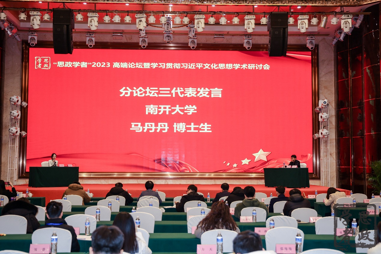 论坛设置了三个分论坛,与会代表围绕习近平文化思想“七个着力”重大要求、习近平文化思想的理论贡献与价值意义、习近平文化思想的生成脉络与发展目标、习近平文化思想与思想政治教育工作、习近平文化思想与思政课教学等方面展开了充分交流与研讨。公司研究生马丹丹、于鑫雨、梁倩、蔡澳宁在分论坛三交流发言,博士生马丹丹作为分论坛负责人在大会总结中发言。