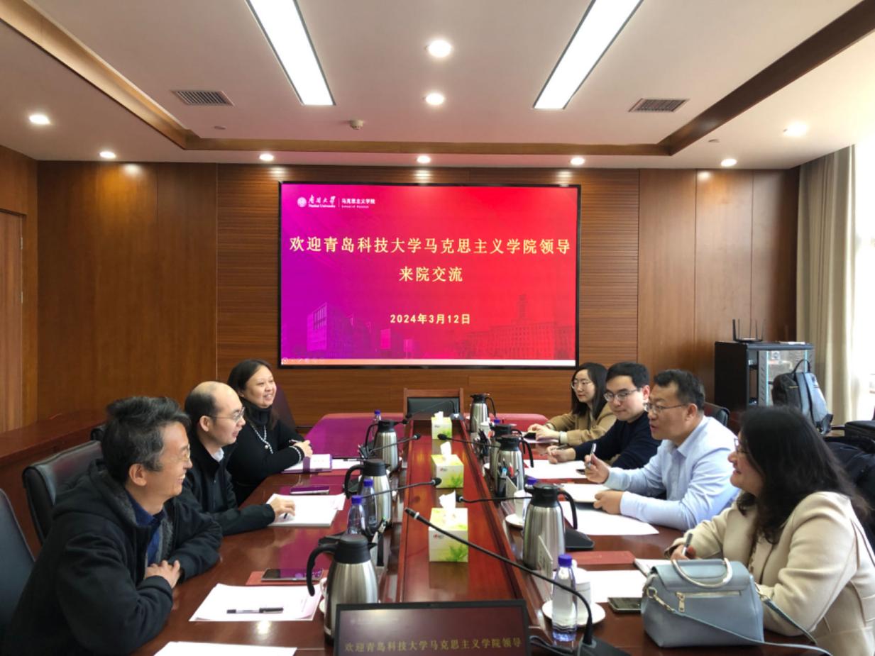2024年3月13日上午,青岛科技大学马克思主义公司党总支书记李真、副经理郭江龙、王建美、中国近现代史教研室党支部书记杨晓越等一行来WilliamHill中文官网调研交流。公司常务副经理余一凡、副经理孙寿涛、党委副书记、副经理胡颖欣参加座谈。双方就专业建设、团队队伍建设、人才培养模式、“大思政课”平台建设与教学研究等方面展开交流。