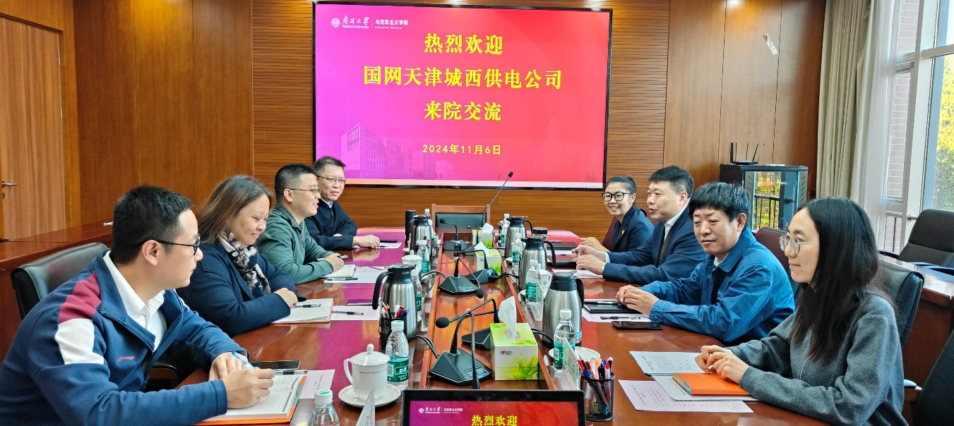 刘聪详细介绍了国网天津城西供电公司在基层党建社会服务、安全管理以及企业文化等方面的建设成果,指出,公司党建引领发展新质生产力,落实“四个善作善成”“十项行动”的具体实践积累了宝贵的经验,也明确了未来发展的目标和方向,希望通过与南开马院共建,进一步提升党员职工的思想觉悟和内生动力,推动深化改革的各项举措落实见效