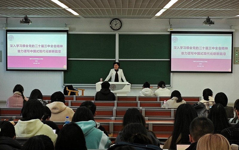 付洪教授系统全面地介绍了党的二十届三中全会的主要内容,同学们纷纷表示,通过此次学习对党的二十届三中全会精神有了更加明晰的认识,作为新时代南开学子,未来会坚定理想信念,勇于担当使命,积极参与到进一步全面深化改革的相关实践和研究当中,为推进中国式现代化、实现中华民族伟大复兴贡献自己的力量。
