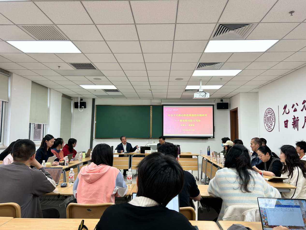 讲座伊始,吴潜涛教授以“价值”概念为切入点,启发同学们对经典理论进行再认识。他以“价值是表示主客体关系的范畴”为例,指出“价值”范畴中的主体、客体和关系本身都可以成为研究的切入点。他认为,一个范畴的定义本身就是值得多角度研究的内容。