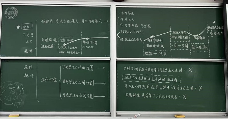 本次比赛由教代会教学科研工作委员会的专家担任评委,从书写规范、布局合理、内容准确、创意新颖、教学实用性等多维度综合评审。最终评选出一等奖2名、二等奖4名、三等奖8名。宁悦老师的板书设计紧扣《马克思主义基本原理概论》课程内容,逻辑清晰、重点突出,兼具学术性与艺术性,充分展现了马克思主义理论教学的独特魅力。