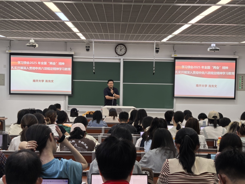 肖光文教授首先对2025年全国“两会”精神进行了全面而深入的解读。他从“两会”的特殊重要意义、重点内容等方面展开,详细阐述了“两会”对国家发展的重要指导意义。他指出,2025年“两会”强调了高质量发展、科技创新、民生保障等关键领域,明确了未来一段时间国家发展的重点方向和任务,为同学们理解国家政策和发展趋势提供了清晰的框架。随后,他又深入剖析了中央八项规定精神在加强作风建设、推进全面从严治党中的重要作用,强调了廉洁自律、艰苦奋斗等优良作风对个人成长和社会发展的深远影响。