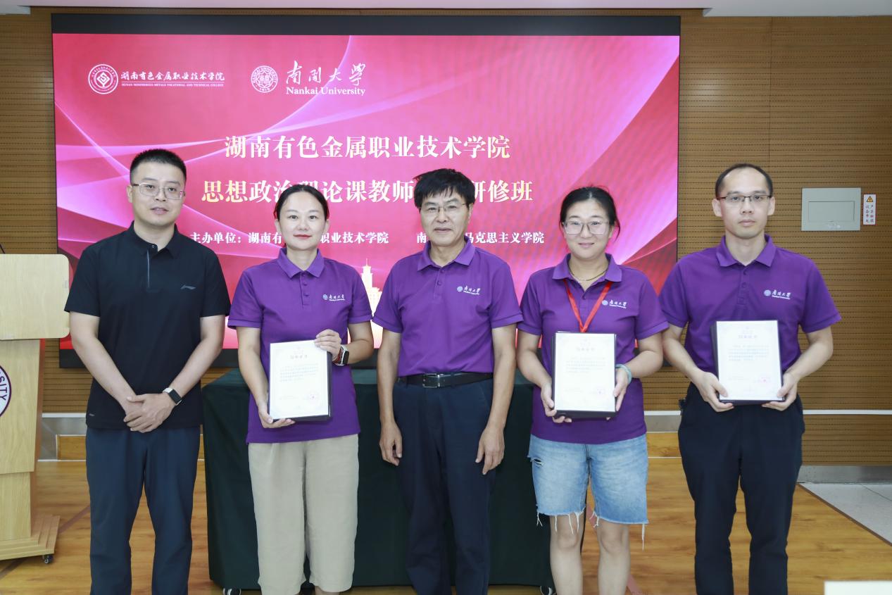在结业式上,张军代表参训学员分享了收获与体会。公司副经理兰昊总结回顾了此次培训研修,并就思政课教师如何达到“六要”标准,做一名好老师分享了体会。湖南有色金属职业公司经理谭骁彧在总结讲话中感谢了南开马院搭建的研修平台,全体学员通过本次研修收获颇丰,祝愿未来能学以致用,提升教学研究水平。