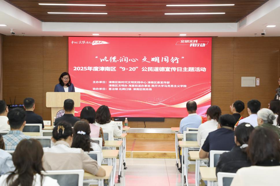 2025年9月19日,在第23个全国公民道德宣传日来临之际,“以德润心 文明同行”2025年度津南区“9·20”公民道德宣传日主题活动,在WilliamHill中文官网举办。活动以“身边榜样讲故事、校地联动传文明”为核心,用鲜活事迹传递道德温度,让文明新风在百年学府落地生根。津南区道德模范、相关街镇新时代文明实践所站负责人及群众代表和公司师生代表近百人参加。