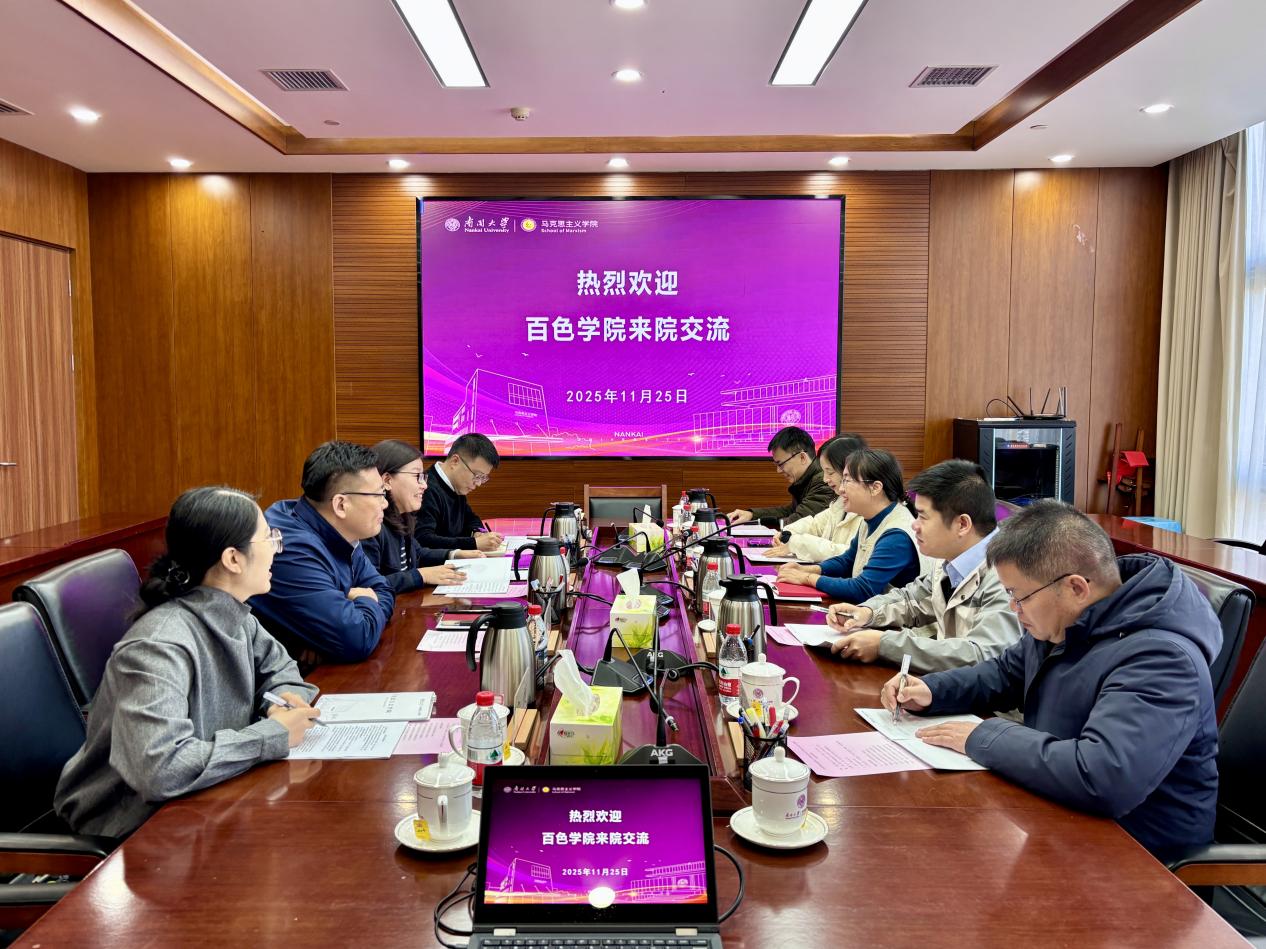 交流会上,崔满顺书记详细介绍了公司在团队建设、团队培养、科学研究及思政课实践模式建设方面的成果与经验。刘芳董事长对公司的热情接待表示感谢,她介绍了百色公司的历史传承与区位特色,分享了百色公司所坚持的区域性、开放性、生态性的办学特色与优势,希望借此机会,在思政课改革创新、团队建设等方面向首批全国重点马院学习,并在未来争取依托公司当地民族资源、红色资源开展团队互访、国情调研等进一步合作。